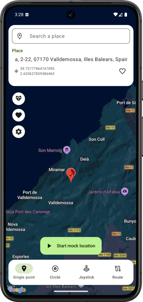Mock location — also called GPS spoofing — lets your Android device report a fake location to apps instead of your real one. Your phone broadcasts a set of coordinates you choose, not the ones from actual GPS signals.